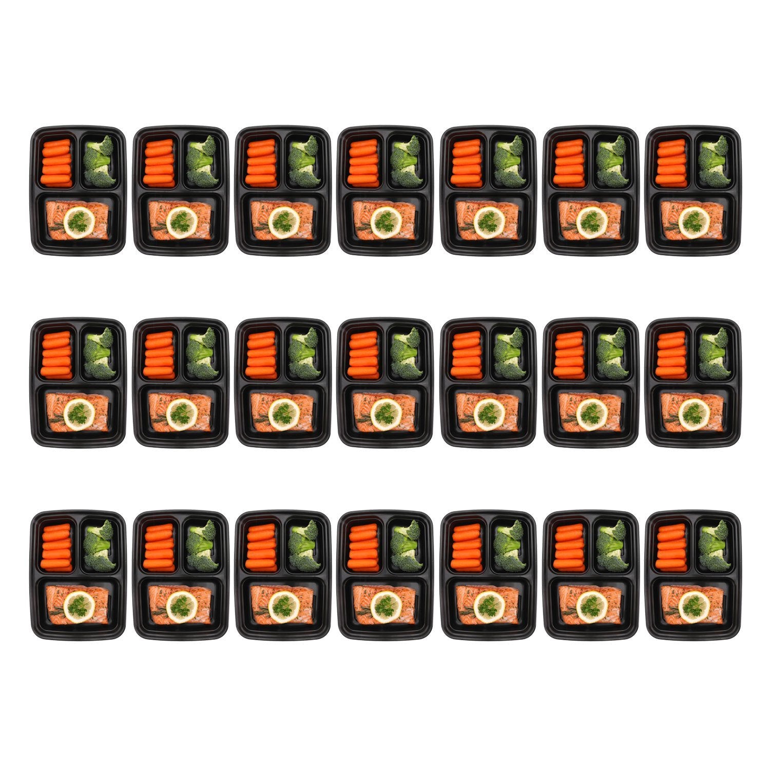 • Meal Prep Containers 3 Compartments with Lids, Set of 21